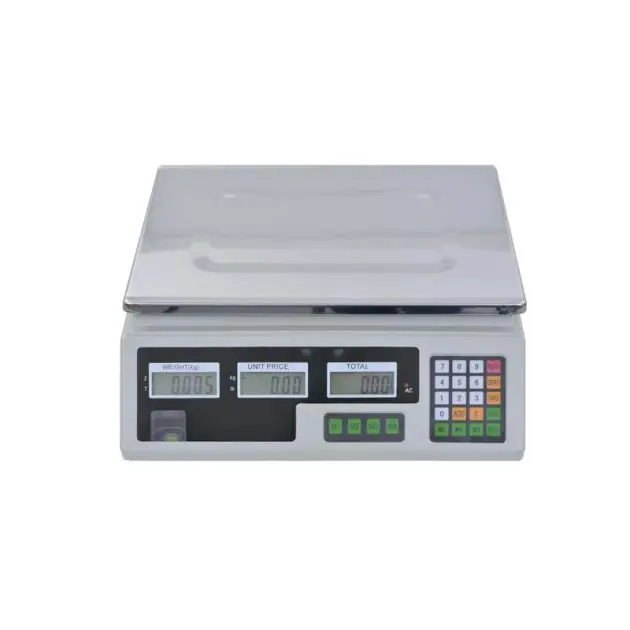 La balance électrique est équipée d’un plateau de pesée en acier inoxydable, qui a une forte résistance à la pression et une durabilité. Affichant vos résultats sur des écrans LCD avant du commerçant et arrière du client et prend en charge les fonctions de pelage et de remise à zéro, de conversion d’unité, d’anti-secousse, d’opération de prix cumulée et vous donne la réduction des prix des produits de base, ce qui va rendre vos ventes plus efficaces.