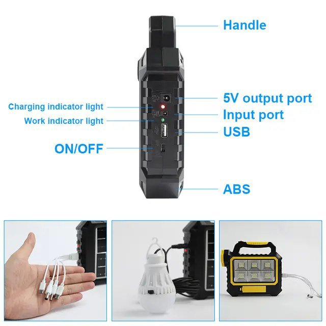 1. Pour cette lampe, vous avez deux méthodes de recharge. la première méthode est la recharge à courant. La deuxième méthode consiste à placer le panneau solaire intégré sous les rayons du soleil.