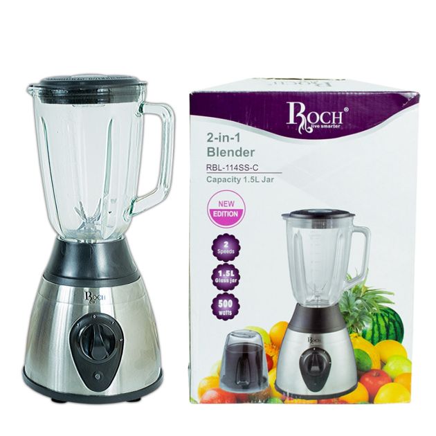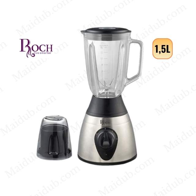 Mixeur-Blender 2en1 – ROCH – RBL-114SS-C – 500W – 1,5 Litres avec Bol Sec – Bol en Verre – Argent-noir – Garantie 3 mois