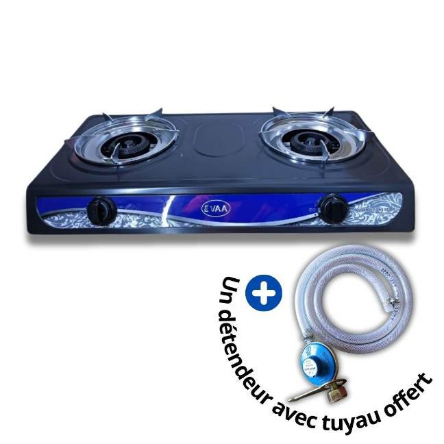 Plaque à Gaz 02 foyers EVAA, automatique, noir, modèle EV-004Plaque à Gaz 02 foyers EVAA, automatique, noir, modèle EV-004