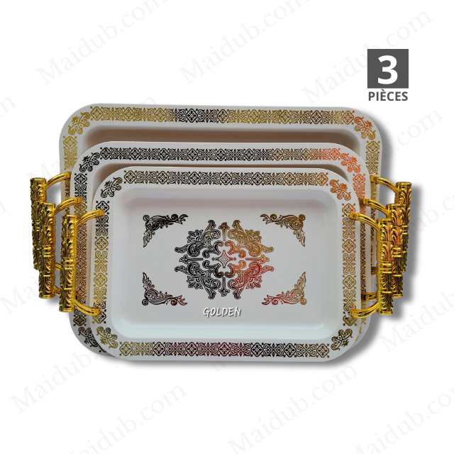 Plateaux de service en plastique dorésPlateaux de service en plastique dorés