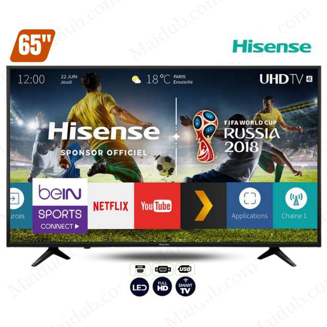 Une télévision de haute qualité de la marque Hisense vous permet de plonger dans une nouvelle expérience de visionnage. Le système d’exploitation de cette TV, combinée à la fois des technologies intuitives et un design simple élégant, vous offre des fonctionnalités exceptionnelles et des tonnes de contenu. La smart TV Hisense peut être accrochée au mur ou posée sur une table. Il comporte des connectivités tels que : 3 ports HDMI, 2 ports USB, port Lan, prise casque (3,5 mm)