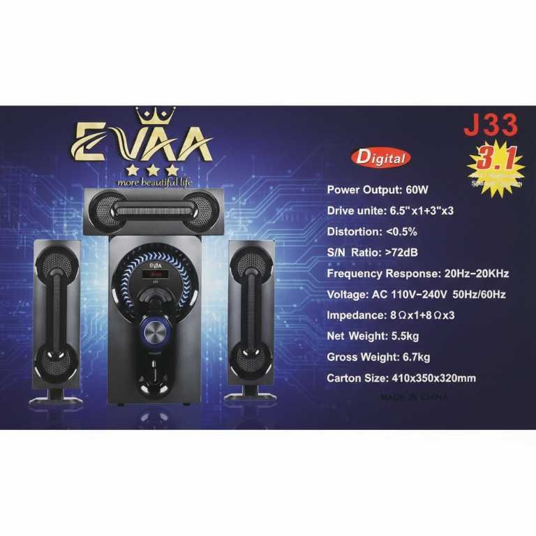 Plongez dans une expérience sonore immersive avec le Woofer EVAA 60W J33. Conçu pour les amateurs de musique et de cinéma à domicile, ce système audio 2.1 allie une esthétique moderne à une puissance acoustique remarquable. Grâce à ses 60W de puissance pure, il délivre des basses profondes et des aigus cristallins qui remplissent votre pièce. Que vous souhaitiez diffuser votre playlist préférée via Bluetooth, écouter la radio FM ou brancher une clé USB, le J33 s’adapte à toutes vos envies. Son design élégant avec affichage LED intégré en fait un véritable objet de décoration pour votre salon.